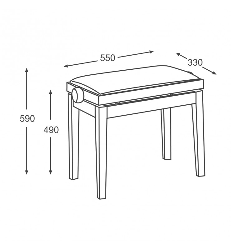 Le modèle BG27 se décline en plusieurs finitions de bois et son coussin est disponible en plusieurs coloris et matières (velours, simili, microfibre ou cuir). Avec son coussin inséré dans le cadre et ses pieds évasés, cette banquette de piano est un classique et s'assorti avec beaucoup de couleur de piano. Le mécanisme en double ciseaux fait de la BG27 un siège de piano très stable et résistant.