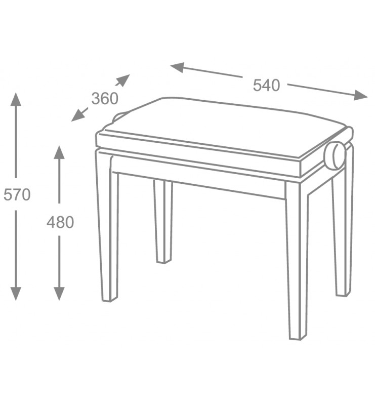 Banquette de piano BG32 réglable en hauteur avec mécanisme de concert. Le tapis est incrusté dans le cadre en bois. Son mécanisme de concert est très robuste et durable, ce qui permet une grande précision au moment de régler la banquette. Les bords sont arrondis pour une meilleure commodité et un beau design.