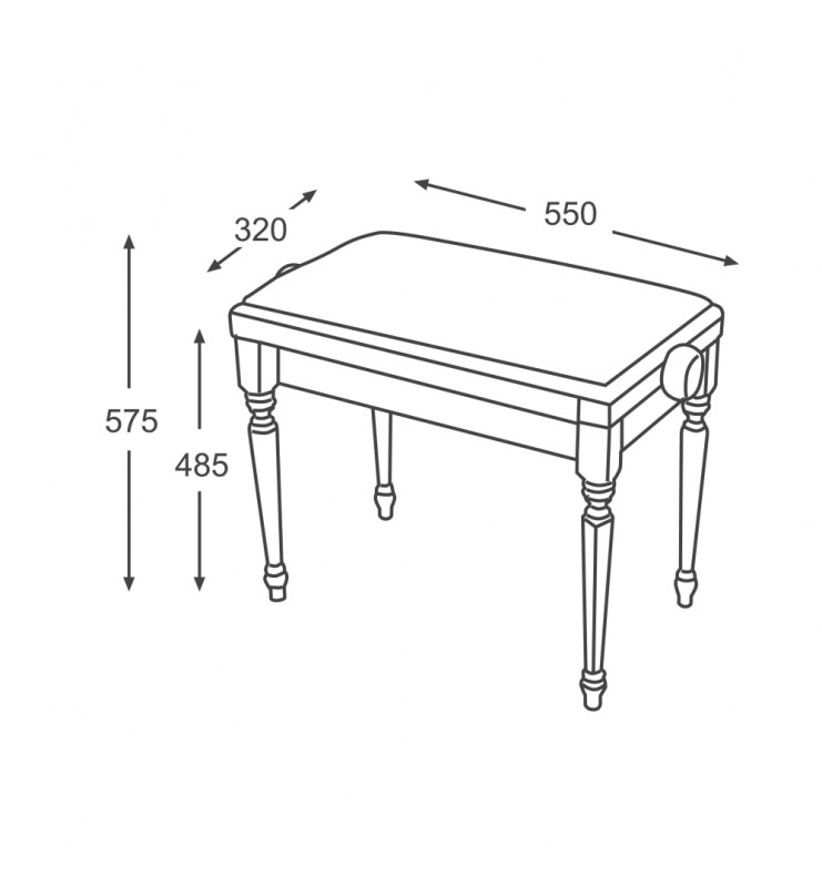 Banquette de piano BG3R aux pieds travaillés réglable en hauteur.