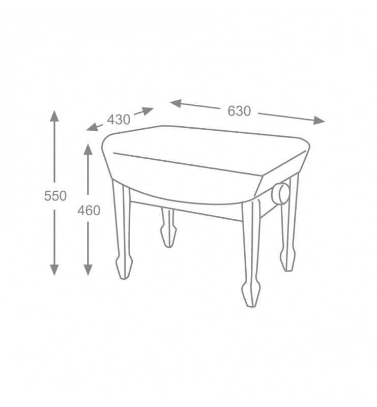 Banquette BC-39  réglable en hauteur pour piano à queue avec mécanisme de concert. La coussin de la banquette BC-39 est de style Chesterfield, c'est à dire avec des boutons (capitonné), la mousse dense a une épaisseur de 60 mm. Le mécanisme de concert qui équipe la banquette BC-39 est très robuste et durable, ce qui permet à la banquette une grande précision au moment du réglage. Les pieds disposent de nivélateurs en caoutchouc. L'assise rectangulaire de la banquette de piano BC-39 mesure 56 cm sur 40 cm . Réglage de la hauteur de 46 cm à 55 cm.