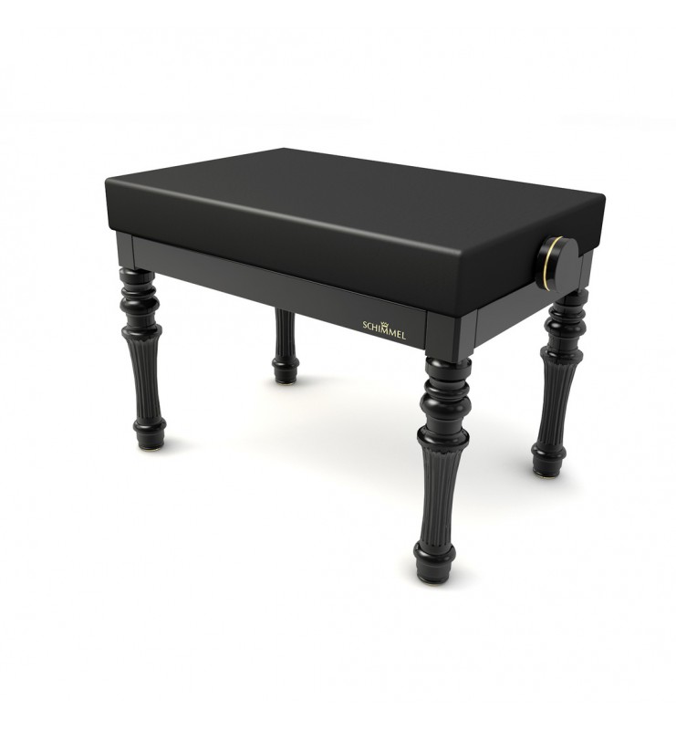 Banquette Schimmel de modèle Belle Époque avec assise plate et mécanisme spécial. Les pieds sont tournés style Belle Époque et le tapis design lisse est composé d’une mousse de grande densité. Elle est tapissée en cuir de la plus haute qualité et est ornée de décoration sur les poignées et sur les pieds avec le même style que votre piano. Banquette avec la marque Schimmel inscrite sur chaque côté long de la banquette.