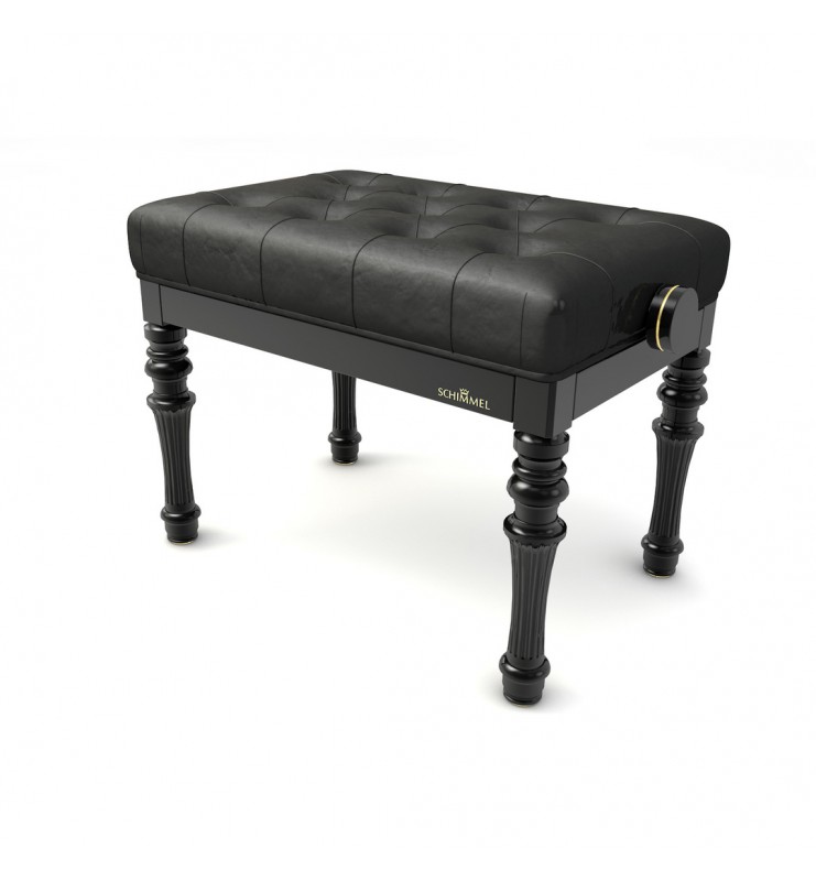 Banquette Schimmel de modèle Belle Époque avec assise capitonnée de 11 boutons et mécanisme spécial. Les pieds sont tournés de style Belle Époque et le tapis design lisse est composé d’une mousse de grande densité. Elle est tapissée à la main avec du cuir de la plus haute qualité et est ornée de décoration sur les poignées et sur les pieds avec le même style que votre piano. Banquette avec la marque Schimmel inscrite sur chaque côté long de la banquette.