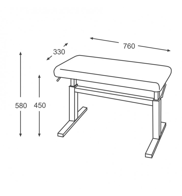 Banquette de piano large BM-45H hydraulique sur structure métallique avec coussin biseauté vers l'avant.