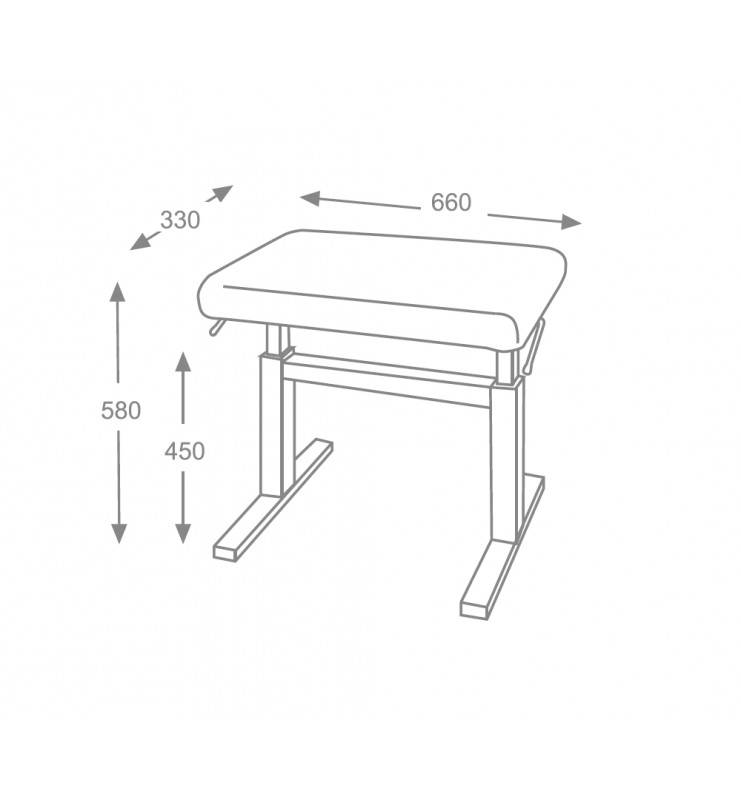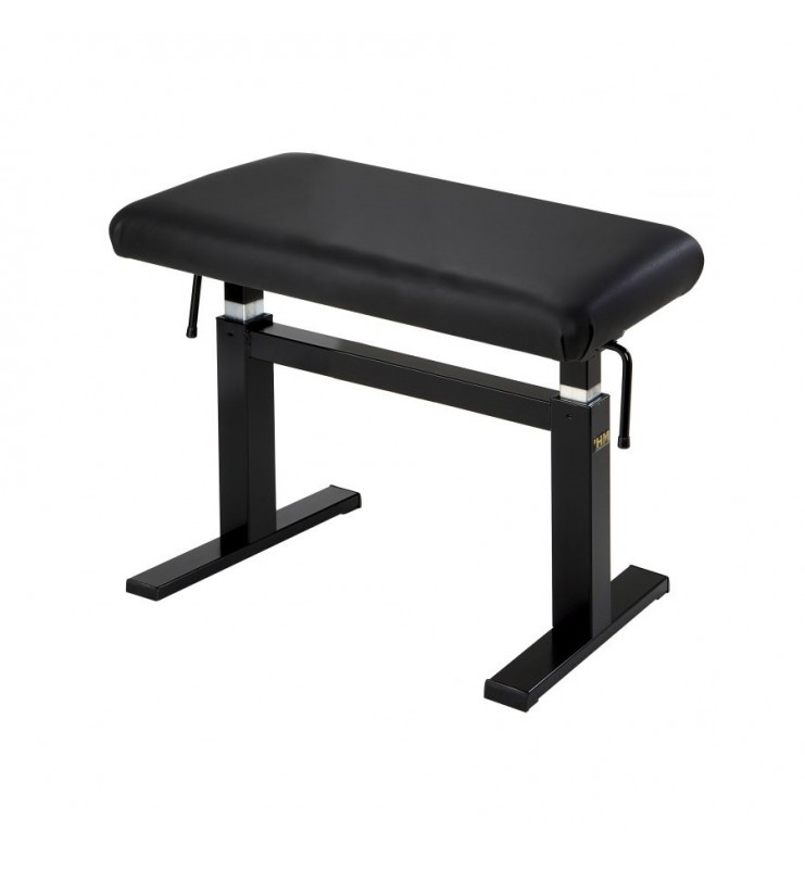 De fabrication espagnole, la banquette hydraulique de piano BM-44H se règle très simplement en hauteur par pression sur les manettes pour actionner le système hydraulique. Il est alors facile et rapide de changer la hauteur de réglage entre chaque élève. Le coussin de la banquette de piano BM-44H est aussi incliné vers l'avant afin de ne pas presser les artères de la cuisse et permet dès lors d'y rester assis plus longuement. Ce coussin est également d'une bonne épaisseur et d'une bonne densité pour le confort du pianiste. La structure de la banquette hydraulique BM*44H est en métal.