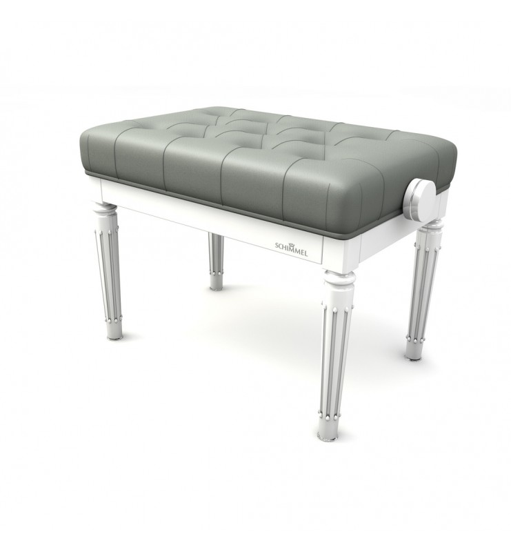 Banquette Schimmel de modèle Royal avec assise capitonnée de 11 boutons et mécanisme spécial. Les pieds sont tournés et rayés style Royal et le tapis design capitonné est composé d’une mousse de grande densité. Elle est tapissée en cuir de la plus haute qualité et est ornée de décoration sur les poignées et sur les pieds avec le même style que votre piano. Banquette avec la marque Schimmel inscrite sur chaque côté long de la banquette.