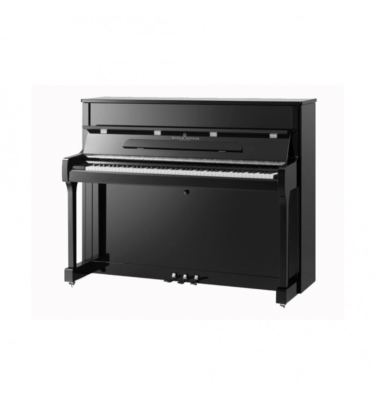 Piano droit de 116 cm de hauteur, le WGS-116 Wilhelm Grotrian se positionne dans la catégorie des pianos d'étude. Les matériaux harmoniques allemands (pour la fabrication du son) utilisés dans pour les pianos Wilhelm Grotrian permettent à ces instruments de produire un son typique allemand, particulièrement coloré et chaleureux. Le choix du WGS-116 se pose aux débutants en recherche d'une sonorité de piano pleine et agréable. Les charnières et pédales du piano droit WGS-116 sont en finition chromée et non en laiton.