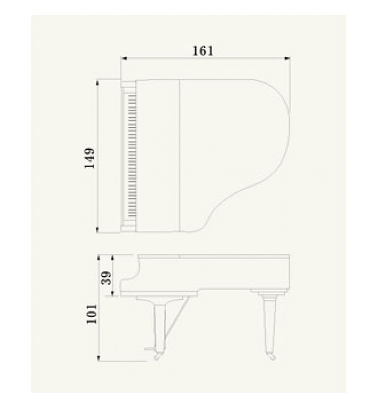 Le piano à queue de 161 cm de longueur de la gamme Conservatory est un quart queue à la sonorité ronde. Il trouve facilement sa place dans une pièce de la maison.