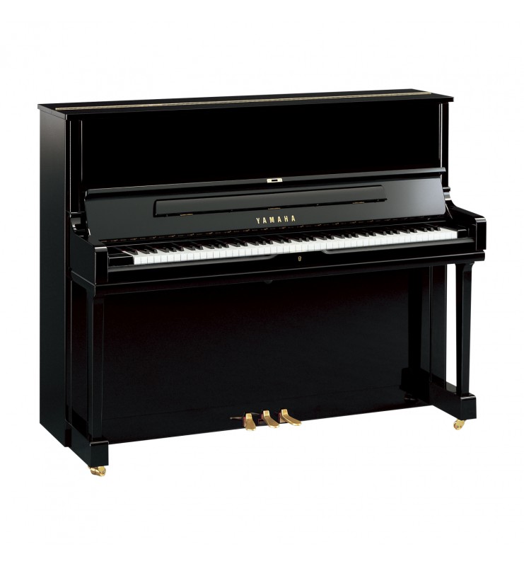 Le piano droit Yamaha YUS1, de 121 cm de hauteur, dispose de double roulettes.