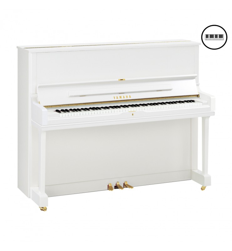 Le piano droit Yamaha YUS1, de 121 cm de hauteur, dispose de double roulettes.