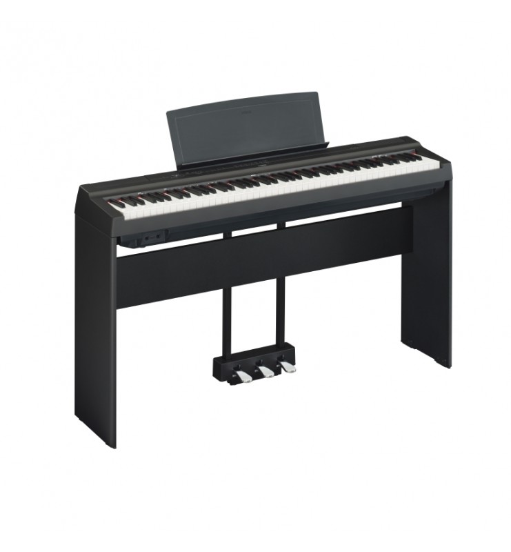 Le piano Yamaha P-125 est livré avec son porte-partitions, le transfo et la pédale amovible FC-5. Le stand Yamaha L-125 et les pédales LP1 sont des options.