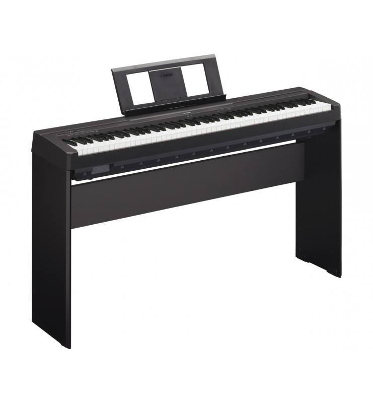 Sur le stand Yamaha L-85 spécialement prévu pour le P45, le piano se fixe au moyen de 4 vis. Il reste facilement détachable pour revenir à la version portable. Le piano Yamaha P45 offre un clavier complet de 88 touches de type Graded Hammer Standard (GHS) pour un budget très abordable. Le clavier GHS de Yamaha qui équipe le P45 est divisé différentes zones de résistance afin de reproduire l'effet de lourdeur, à gauche, et de légèreté, à droite, ressenti sur un piano classique. Le P 45 est un piano électrique portable d'appoint. Pour un apprentissage correct du piano, les Pianos Sibret vous conseillent le YDP-164, le YDP-S54 ou le CLP-625.